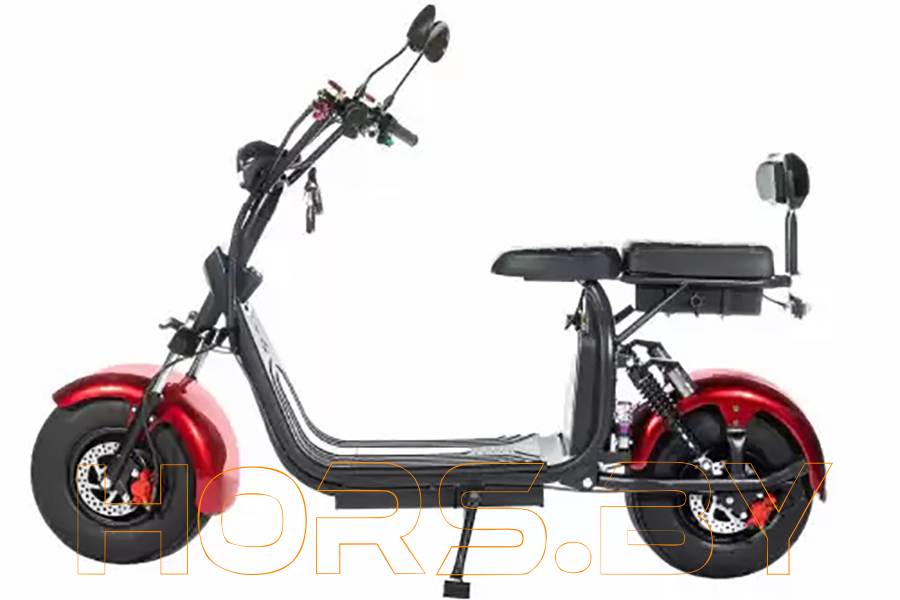 Энергоэффективный (КПД свыше 90%) электроскутер Citycoco 2000W с двумя сиденьями обеспечит быструю и безопасную поездку благодаря мощному двигателю, широким пневматическим колесам, надежным амортизаторам и дисковым тормозам на обоих колесах. На руле есть бортовой компьютер, который позволяет узнать всю необходимую информацию о движении. Есть в разных расцветках.