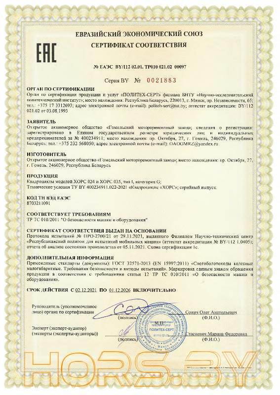Артикул: 00-00007765Hors.by предлагает купить Квадроцикл Хорс 035, который является единственным сертифицированным квадроциклом с объемом двигателя до 250 куб. в Республике Беларусь!
