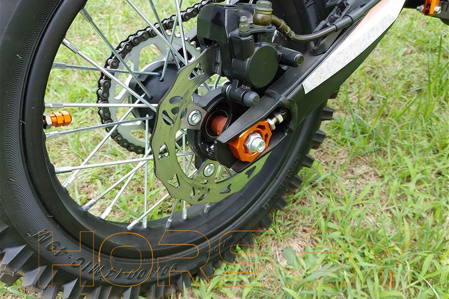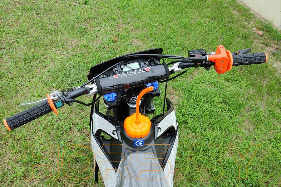Преимущества: защита двигателя, усиленная ступица колеса с подшипниками производства Тайвань, ловушка цепи, LCD-спидометр, алюминевый складной рычаг КПП, армированные передние и задние тормозные шланги, фара, складные ручки тормоза и сцепления, алюминевая усиленная траверса, защита рук (алюминевый каркас), алюминевые обода с фиксатором камеры, полностью регулируемая (сжатие+отбой) передняя и задняя подвеска, задний багажник.