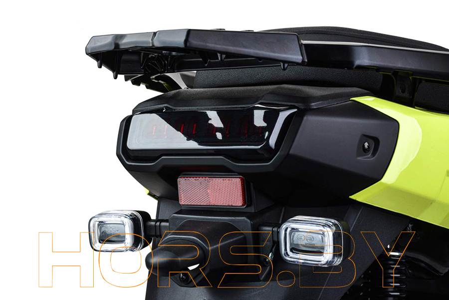 Подвеска - телескопическая вилка и два задних амортизатора. Приборная панель — LCD. Фара светодиодная линзованная. Тормоза — дисковые. Колесные диски литые алюминиевые. Выдерживает нагрузку до 150 кг, что позволяет без труда передвигаться с пассажиром.