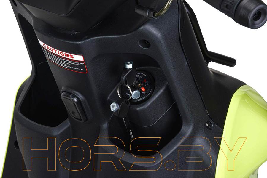 Под сиденьем есть багажное отделение, имеются зеркала заднего вида, боковая подножка, АКБ. Система запуска кикстартер + электростартер. Глушитель с защитным кожухом.