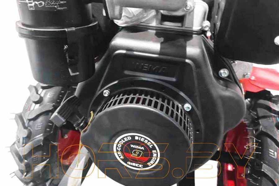 Оснащён дизельным четырехтактным двигателем Weima WM186F с электростартером. Мощность мотора - 9,5 л.с., что дает возможность агрегату справлять с высокими нагрузками и большими объемами работ. Топливный бак объемом 5,5 литров обеспечивает продолжительное время работы без остановки на дозаправку.