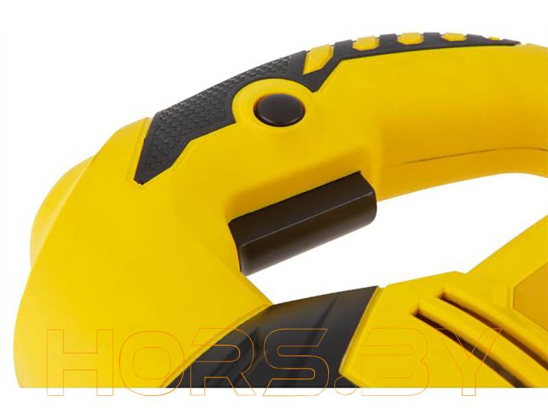Оснащен удобной прорезиненной рукояткой. Предусмотрен быстрозажимной патрон для быстрой замены пильных полотен. Наличие маятникового движения позволяет производить быстрые и ровные пропилы. Стальная подошва регулируется под разными углами. Возможно подключение пылесоса. Регулировка оборотов позволяет использовать лобзик для реза различных материалов.